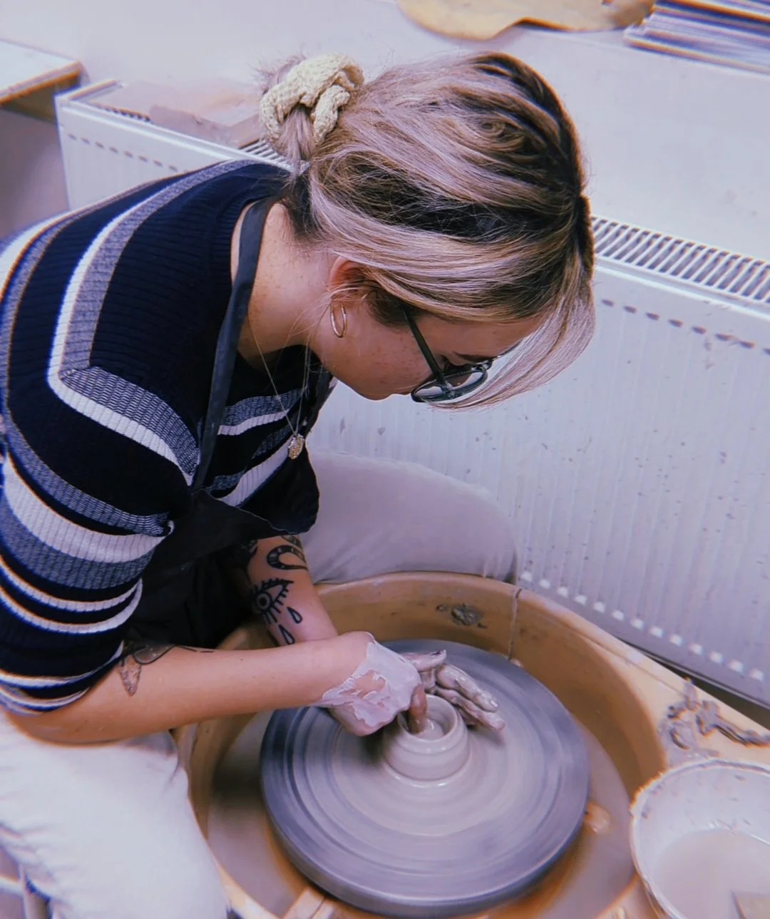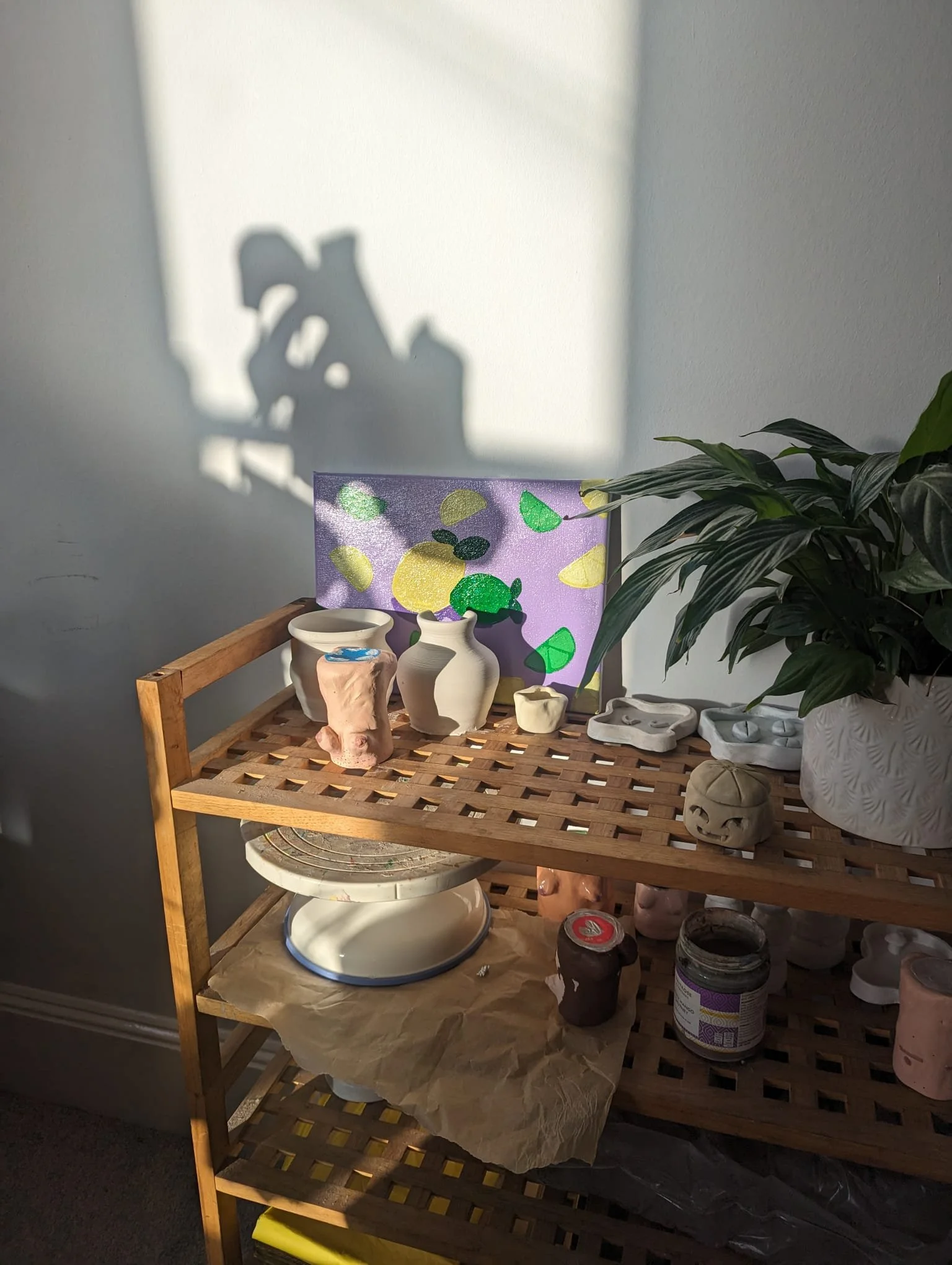 I create art from a little makeshift pottery studio in a corner of my living room. I share tips, tricks and prompts with other people online. I host live workshops to bring a small community of people together, where we craft, chat and laugh.